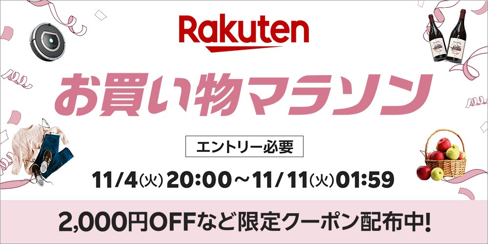 楽天お買い物マラソンは11月11日(火)1:59まで!ぜひ、気になるアイテムを手に入れて、ポイントもゲットしましょう!