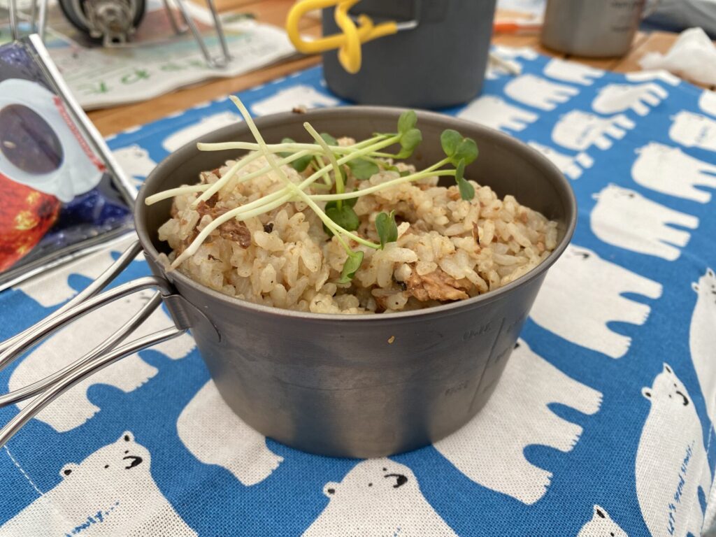 あえて多めにご飯を炊いて、翌朝に活用するのもキャンプの知恵です。