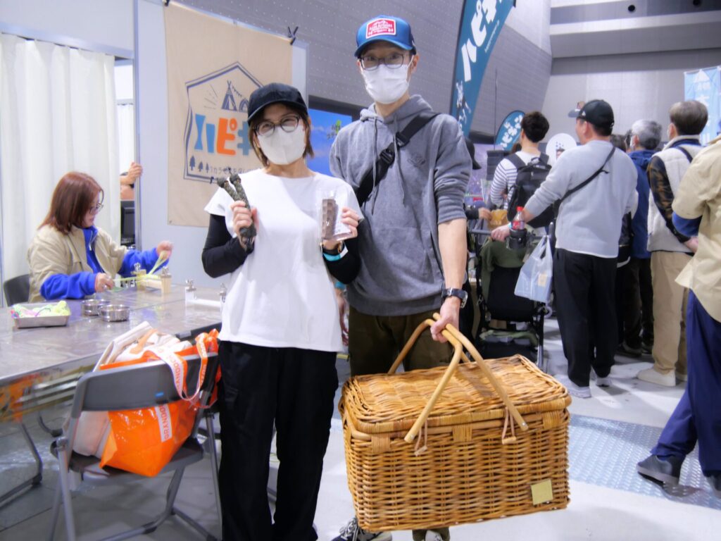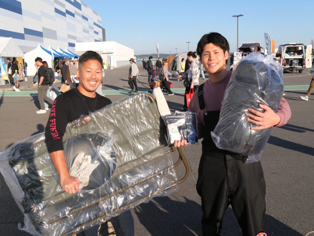 まずは、たくさんの買い物袋やギアを抱えて歩いていた、素敵な笑顔のたかちゃん&りょうちゃんからインタビュースタート!