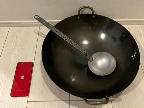 中華街のプロたちの多くに愛されている中華鍋らしく、店員さんに「これでつくるチャーハンは絶品」だと教えてもらい買いました。