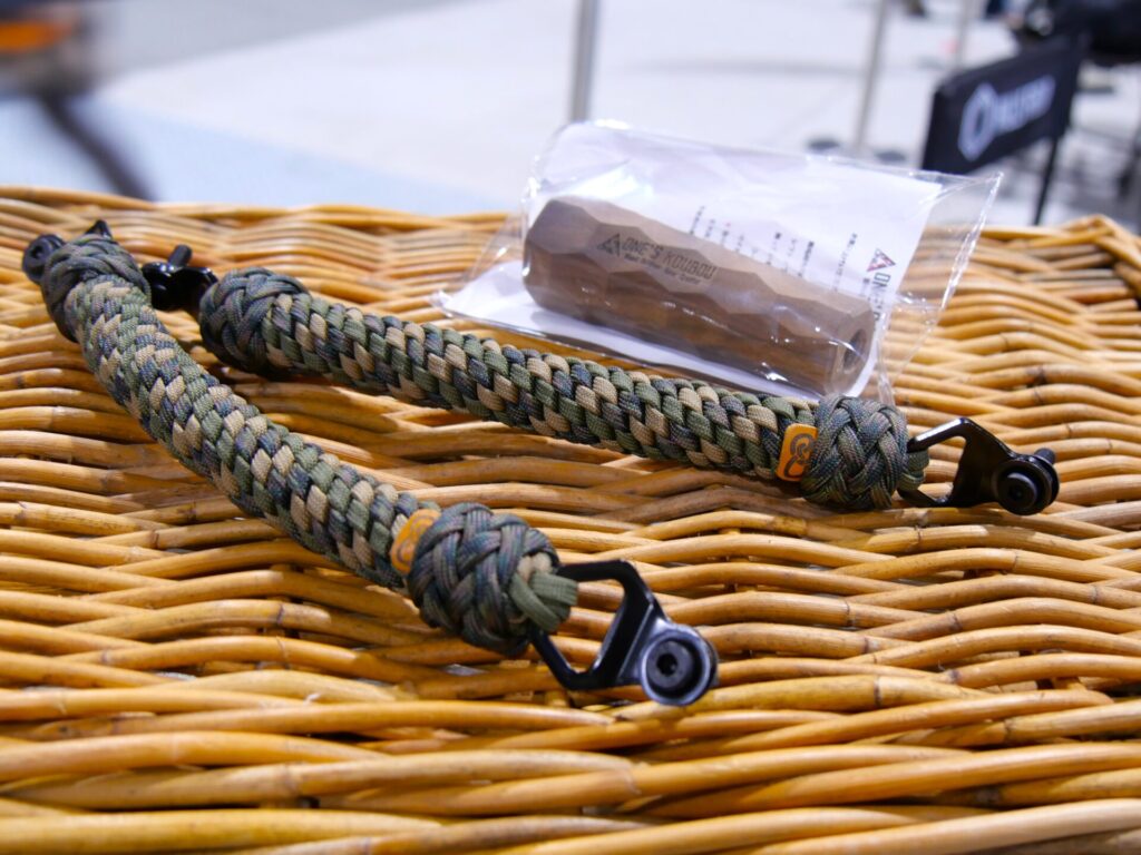 このアシストグリップはパラコードを編んで作られているんですよ。どちらも手作りの温もりを感じられてお気に入りです!