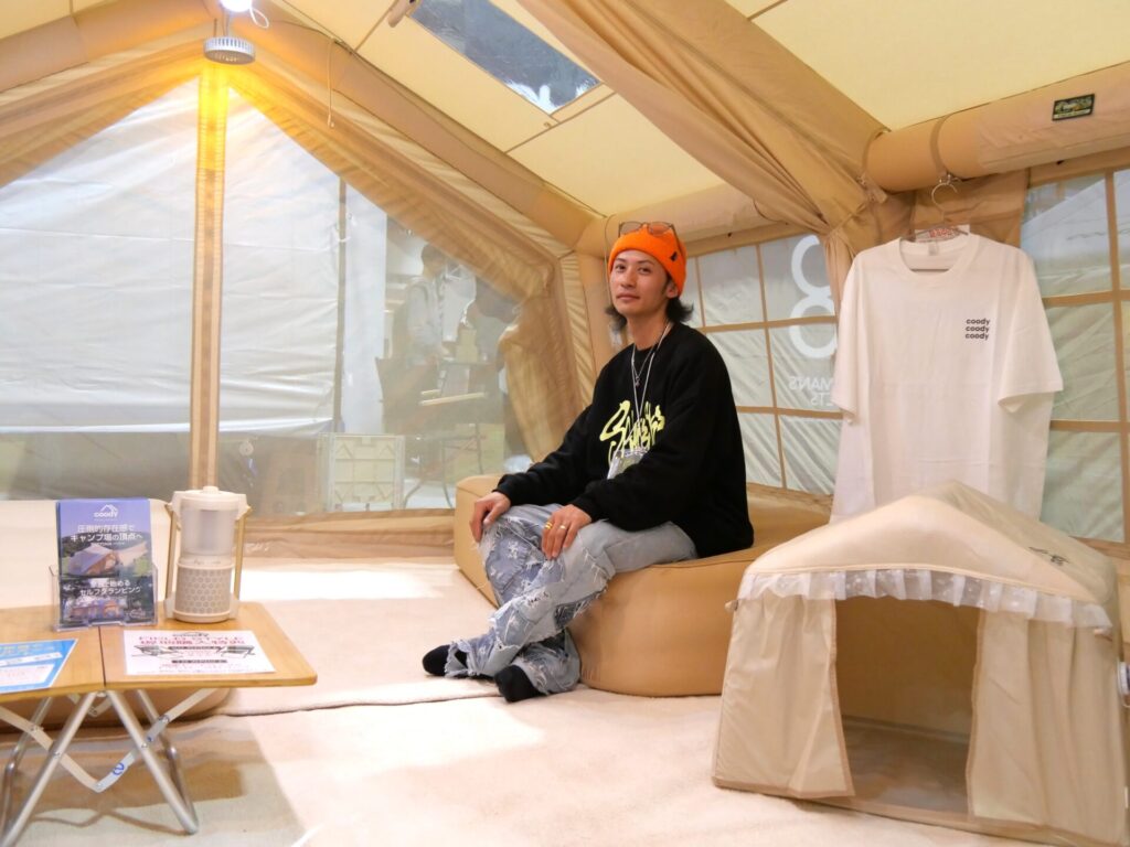 ハピキャンブースでのコラボギアへの高評価に続き、愛用する「COODYエアテント」の魅力を熱く語っていただきました。