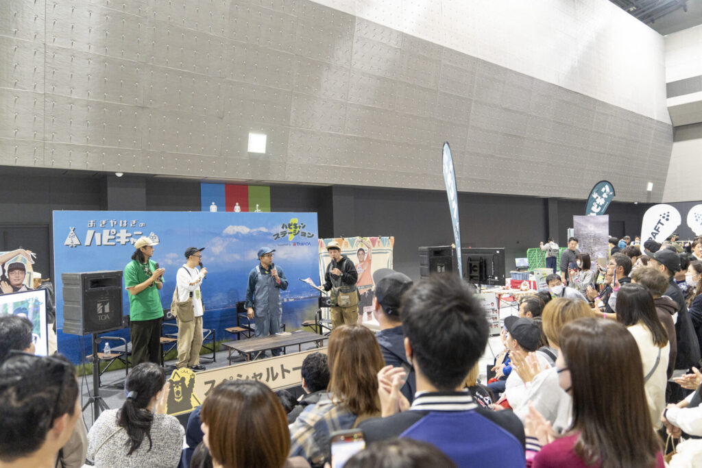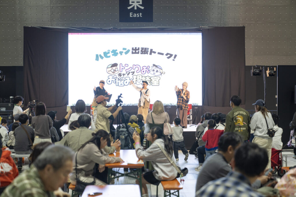 YouTube「ハピキャンチャンネル」の大人気企画「キャンプお悩み相談室」をステージで開催するとともに、YouTubeで生配信されました。