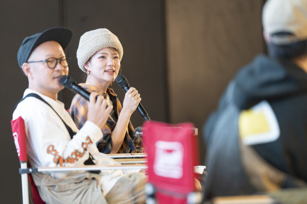 ステージ中はファンからの質問に回答し、開発中の新作テントの情報や好きなお酒の話題など、ファンが気になるエピソードが続々と飛び出しました。