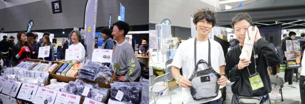 京都発のアウトドアブランドCURIACE(キュリアス)のブースには、キャンプ愛好家の心を掴むこだわりのギアが、破格のイベントプライスで登場!
