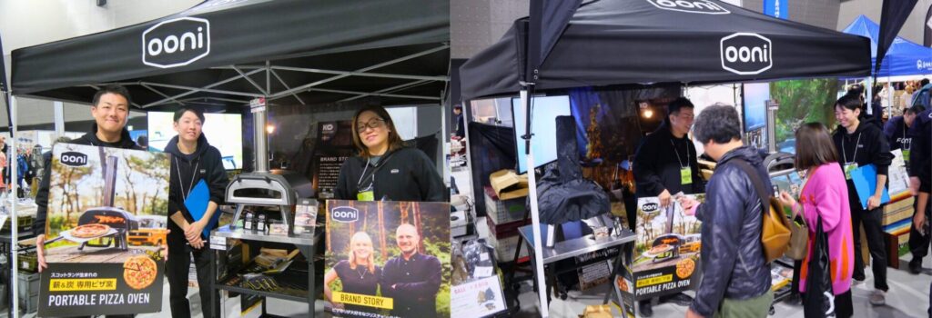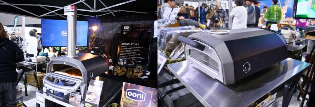 スコットランド生まれのピザ窯ブランド Ooni(ウーニ)ブースには、スタイリッシュな本格ピザ窯に魅了されたキャンパーが絶えず訪れていました。本体奥に薪を入れて庫内を約20分ほど熱すると、わずか60〜90秒で本格ピザが焼き上がります!