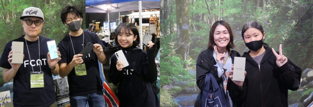 さらに、スマホのプレゼント企画も開催。幸運にも当選した親子に遭遇しましたが、新時代のタフネススマホを手にして、驚きと喜びでいっぱいの様子でした!