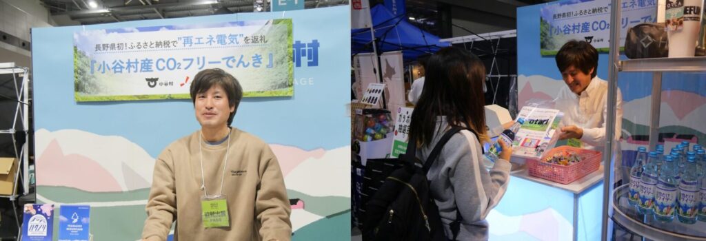 ブースでは、村内の水力発電所で作られる「小谷村産CO2フリーでんき」を紹介。ふるさと納税でも購入できるエコな電気の取り組みに、多くの来場者が関心を寄せていました。