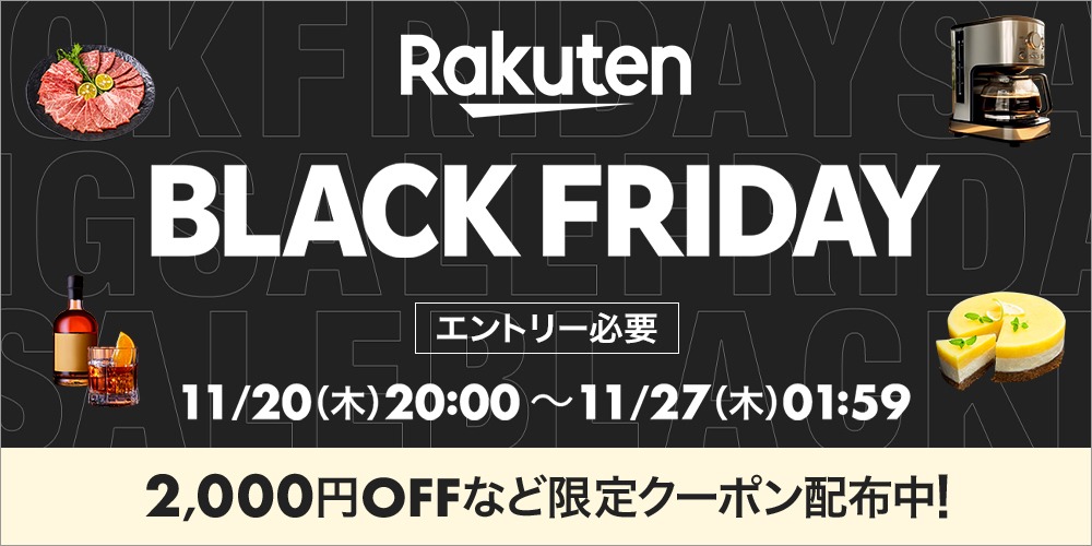 楽天ブラックフライデーは11月20日(木)20:00〜11月27日(木) 01:59まで!