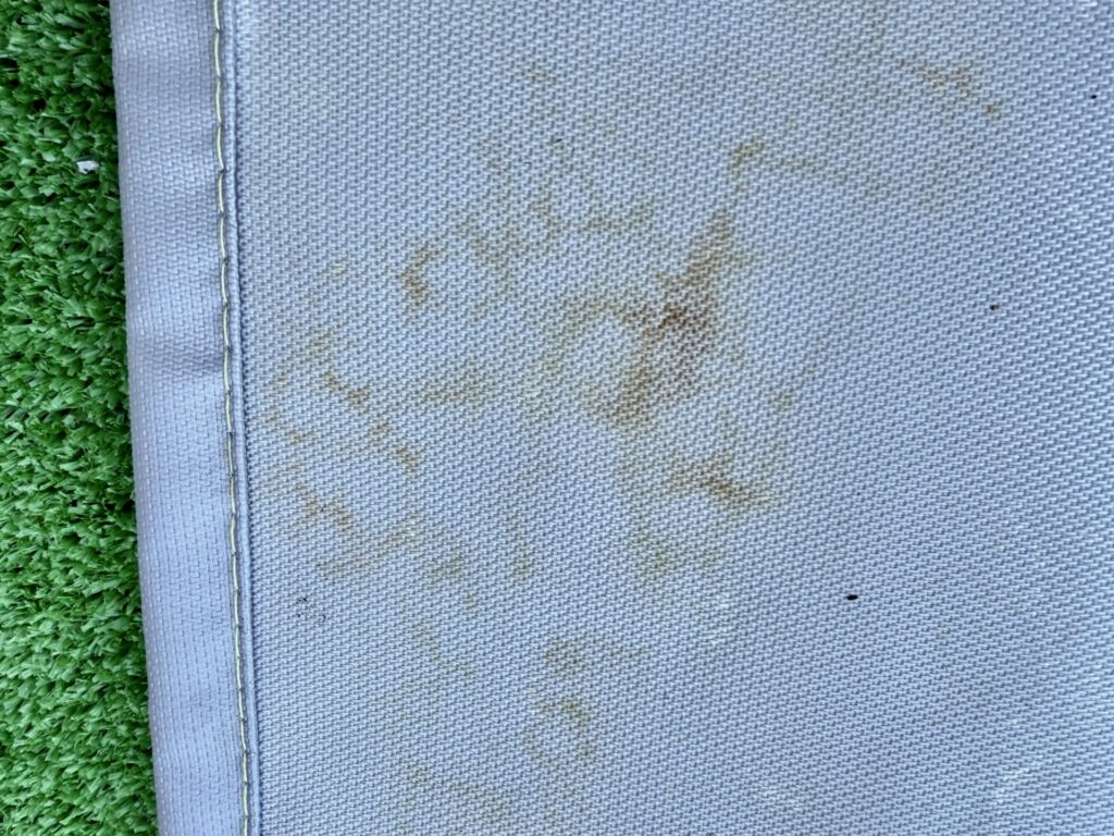 するとコゲ色はつくものの、シートが溶けることはありませんでした。焚き火シートとして、十分な耐熱性を持っていることがわかります。