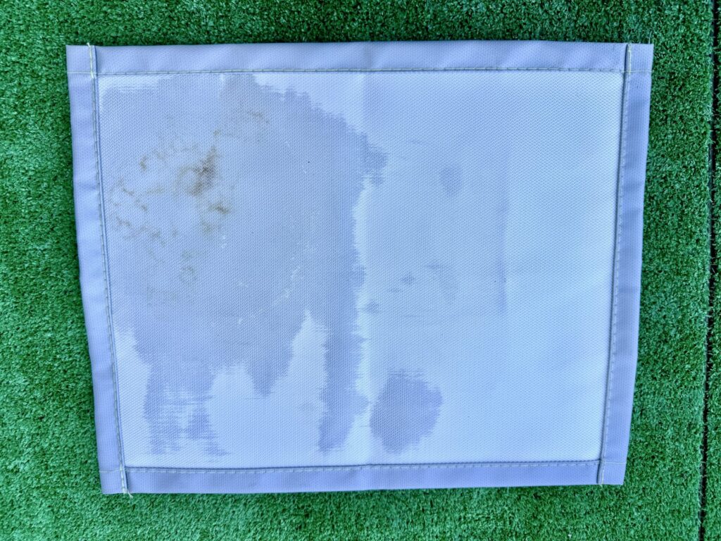 炭が触れた部分は若干黒くコゲ(変色)つきましたが、シートが溶けたり、穴が開いたりすることはありませんでした。もちろん、匂いもなく、シートに火が燃え移ることもなかったです。