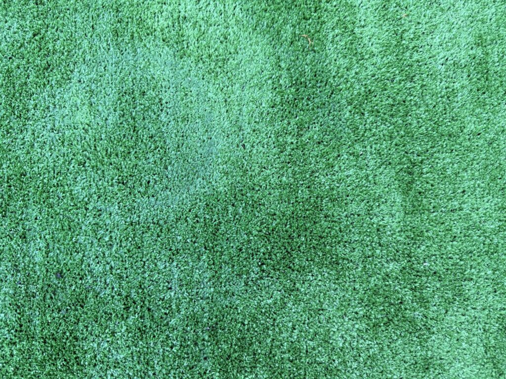 続いて、地面(人工芝)の状態を見てみましょう。今回検証に使った焚き火台は、高さがあまりなく、地面との距離が近いものでした。