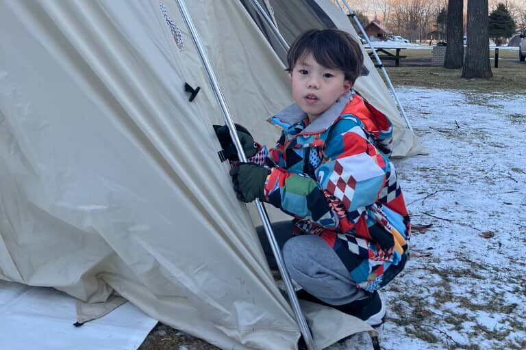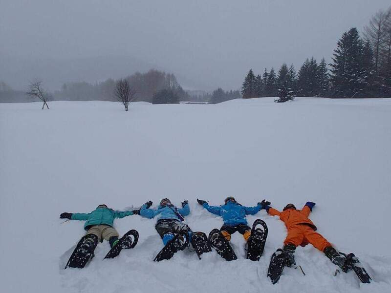 テントの周りを散策するだけで大冒険。スノーシューがあれば、膝まで埋まるような新雪の上もスイスイ歩けます。子どもと一緒に誰も踏んでいない雪原にダイブするのは最高の思い出になるでしょう。
