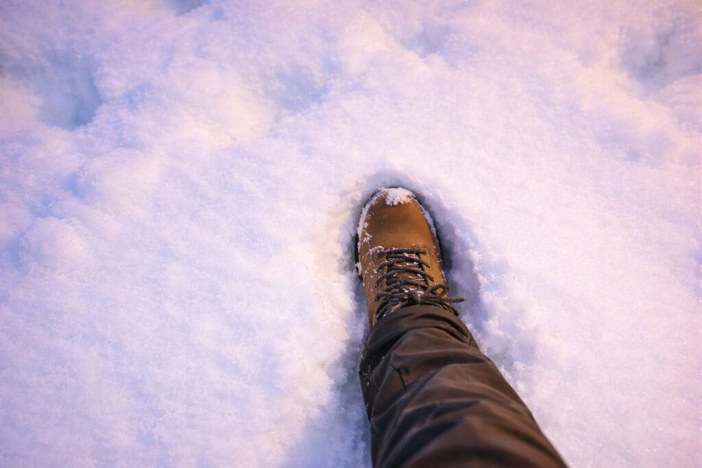 雪の上にテントを張る際、最も重要なのが圧雪(踏み固め)です。中途半端だと体温や暖房の熱で床の雪が溶け、凸凹になることも。スノーシューや足を使って、テントのサイズよりも一回り広く、できるだけカチカチになるまで踏み固めましょう。ここで手を抜かないことが、快適な居住空間を作る第一歩です。