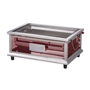 コンパクトな卓上型で、テーブルに置いて使用できます。引き出し式のロストルにより炭のつぎ足しがしやすいほか、オーブン機能も搭載されている機能性の高さが魅力です。
