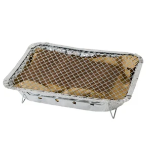 - 素材:本体/アルミニウム、バーベキュー網・スタンド/鉄(亜鉛めっき)、燃料/石炭・木炭、着火紙/パルプ(パラフィン含有)