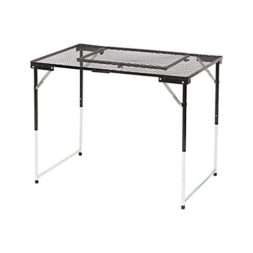 メッシュ天板なので熱い鉄板やダッチオーブンも気兼ねなく置ける便利なテーブルです。通気性が良く、水や汚れに強いのでアウトドア向き。調理台としてサブテーブルにも使いやすいアイテムです。