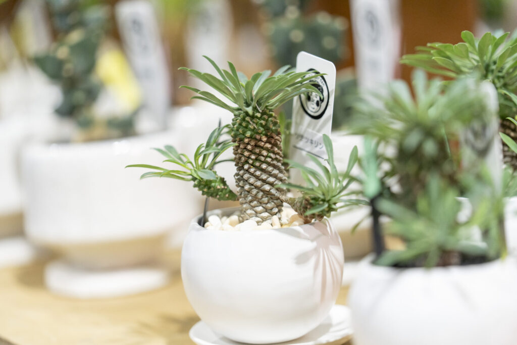 いろいろな植物が植えられていて、鉢のまま持って帰れるんです。僕のおすすめはソテツキリンですね!
