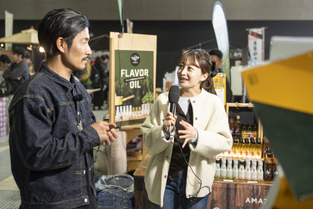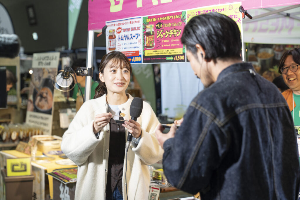 当日の会場の熱気を伝えた特別番組『愛知発!暮らしと遊びの祭典 FIELDSTYLEの歩き方withハピキャン』では、俳優の金子貴俊さん、元中日ドラゴンズの祖父江大輔さん、FIELDSTYLEアンバサダーの尾形杏奈アナウンサーの3人が会場を巡り、その魅力を紹介しました。