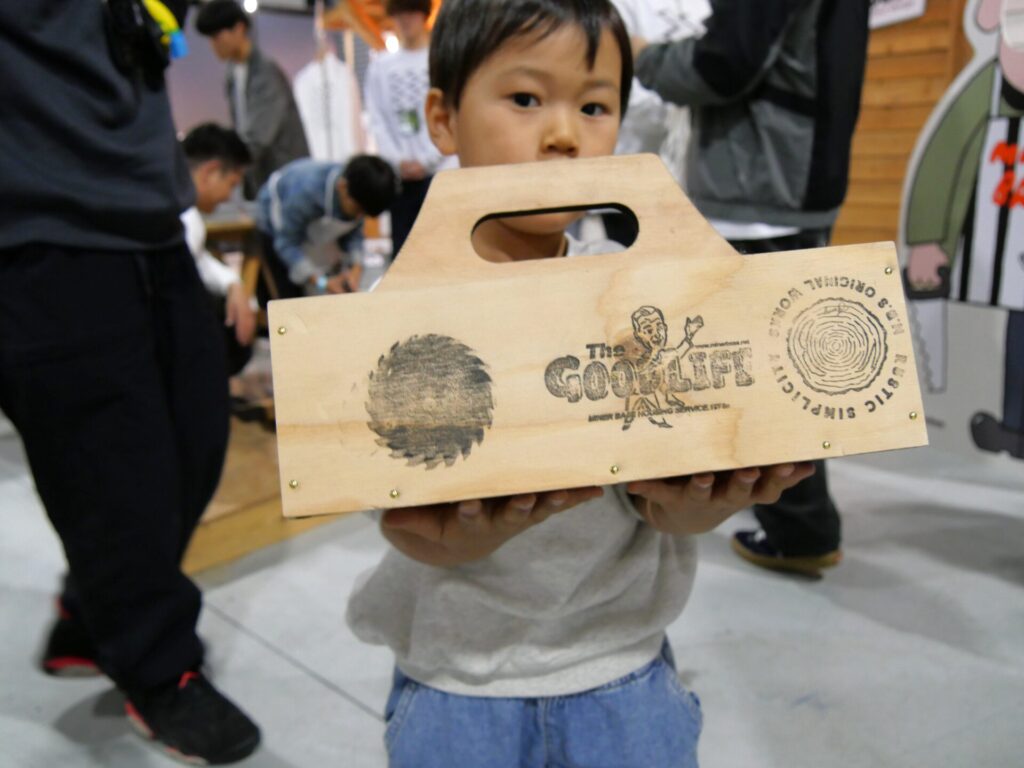 来場者は、木をカットし、ボックスを組み立て、スタンプでデザインを施すという一連の工程を体験し、世界にひとつだけのボックスを完成させます。