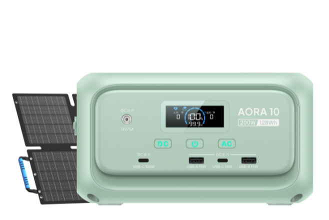 『AORA 10』の最大の特徴は、わずか約1.8kgという驚異的な軽さとコンパクトさです。片手で軽々と持ち運べるサイズ感でありながら、容量128Wh・定格出力200W(瞬間最大300W)を実現しています。さらに電力リフト機能を使えば、最大400Wまでの家電製品にも対応可能です。