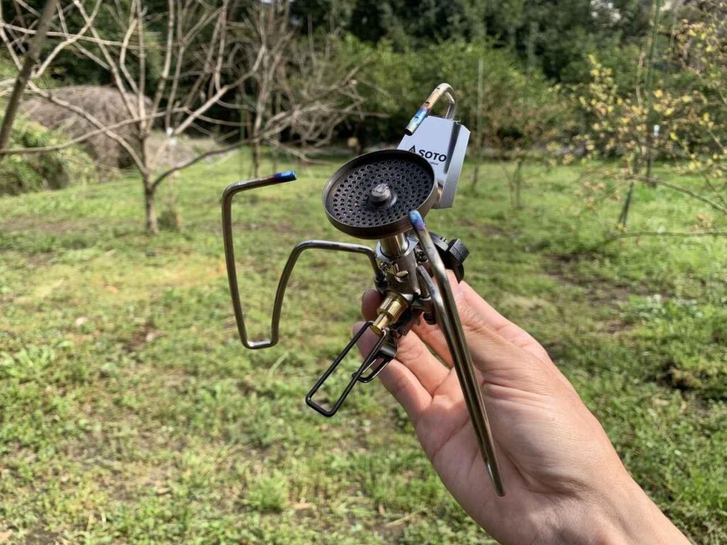 SOTO「アミカス(SOD-320)」は、重量81gほどと軽量なシングルバーナーです。