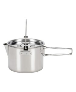 焚き火の炎に耐える、タフなステンレス製のケトル。