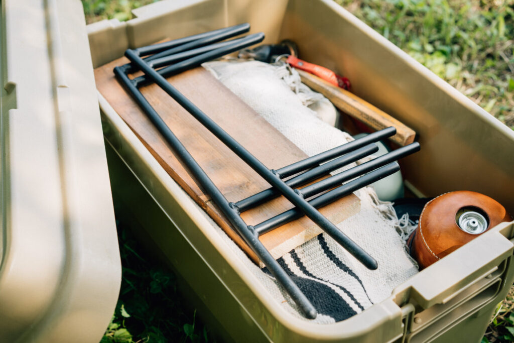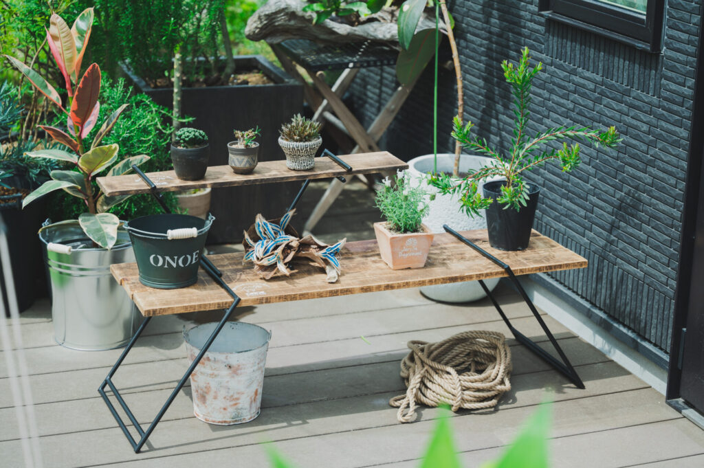 その象徴が『アイアンストライク』。キャンプで使い終わっても片づける必要はなく、庭では“植木鉢を置くラック”や“作業用のサイドテーブル”としても使えます。