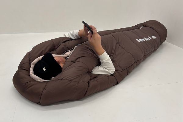 Bears Rockの「-15℃マミー型センタージッパー」は、従来のサイドジッパーとは異なり、まるでジャケットを羽織るように中央から大きく開閉できます。そのため、布団に入るような感覚でスムーズに潜り込めるのが特徴です。