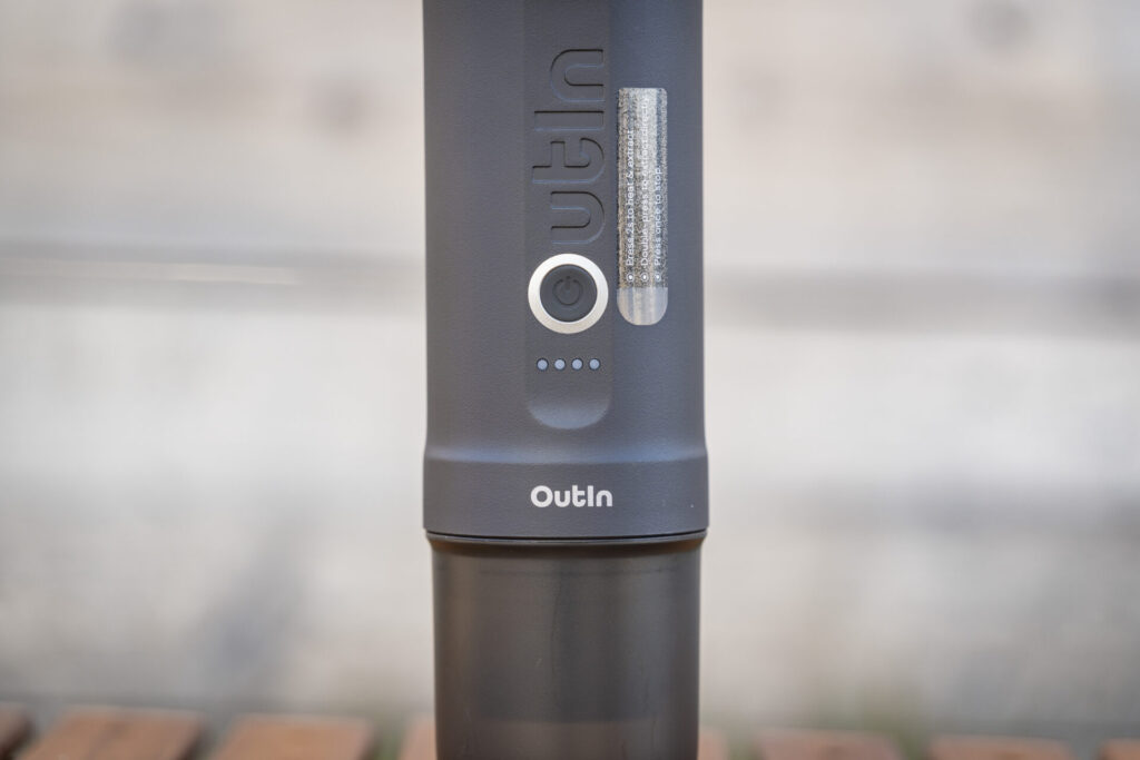 OutIn Nanoは加熱機能付きで冷水からでも温かいエスプレッソを淹れられます。お湯を注げば抽出時間は短時間に。一度の充電で冷水からなら約5回、お湯からなら200回以上エスプレッソを抽出可能です。