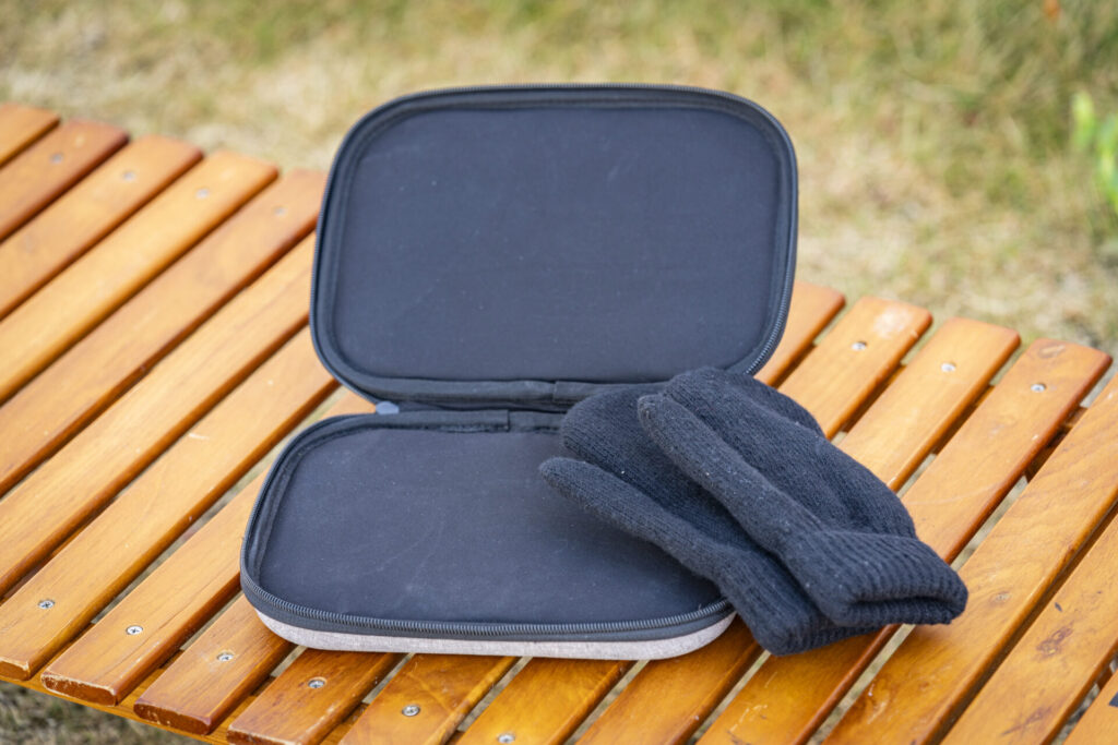 キャンプにおける加熱手段の基本は火。でも火にかけられないけど温めたい物はたくさんありますよね。お湯を沸かさなくても湯煎食品を温められるのはもちろん便利なのですが、箭内さんがしていたように、衣類を温めるというのは、ポータブルレンジポーチだからこそできるワザ。