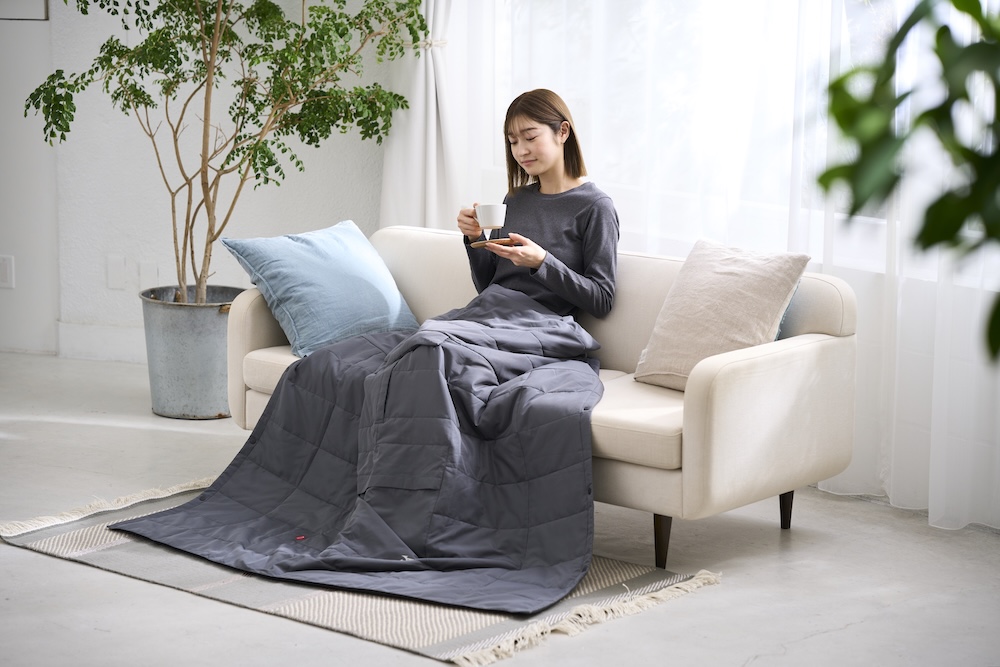 プロのアスリートを支える技術力が、アウトドアのフィールドでも実力を発揮します。「ブレスサーモ」は、身体から発生する微量な水分を吸収して発熱する独自素材。一般的には冬用インナーとして知られていますが、この発熱テクノロジーを搭載したブランケットシリーズは、ただ掛けるだけではない“使える”工夫が随所に凝らされています。