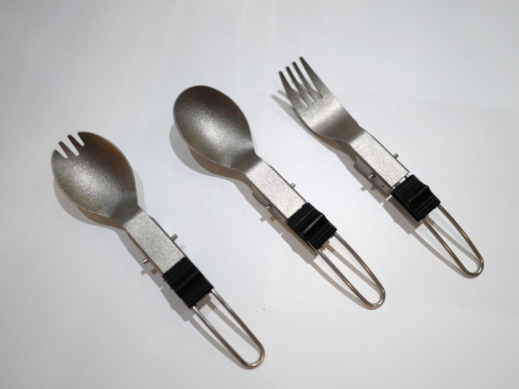 前編の最後にご紹介したいのが、チタン製の折り畳み式カトラリー「UKUスプーン」「UKUフォーク」「UKUスポーク」です。