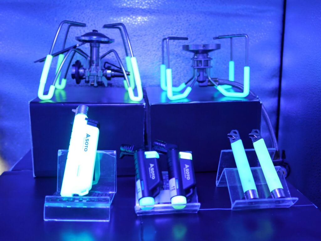 夜のキャンプサイトでギアを迷子にさせない「蓄光シリーズ」。