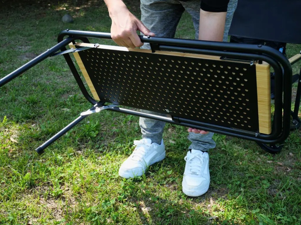 なお、天板を開くだけですばやく組み立てられる「ワンアクション式」のテーブルは、設営も撤収もスピーディーにできます。
