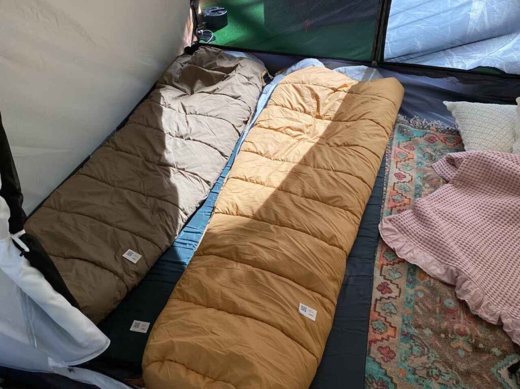 一方で、マミー型に比べると保温性はやや劣る傾向があります。冬に使う場合は、厚手で保温力の高いモデルを選ぶことが重要です。