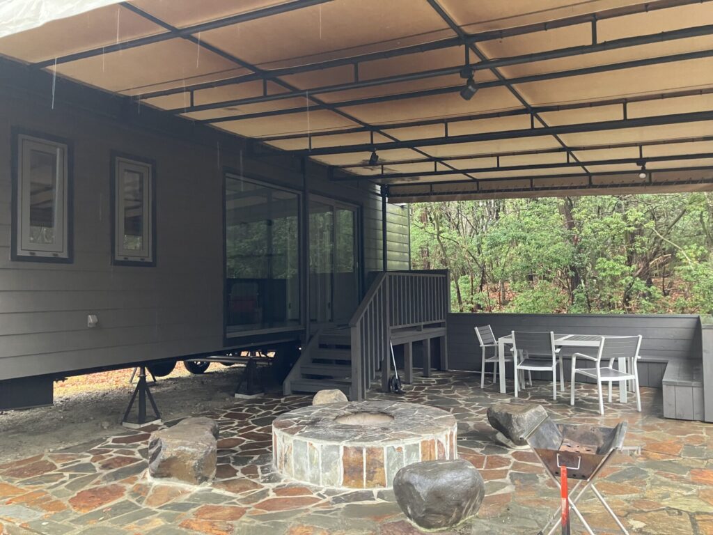 “石(rock)”と“火(fire)”をテーマにしたトレーラーコテージ「Fire Base・TAKIBI」と、デッキに配置された石窯がアクセントのトレーラーコテージ「Fire Base・KAMADO」の2箇所があります。