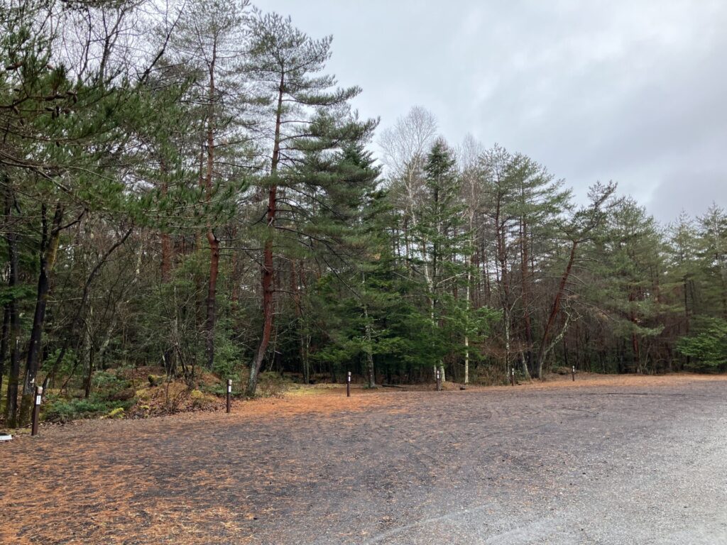 こちらも地面が硬めで、金属ペグの使用をお勧めされているサイトですので注意しましょう。また、フリーサイトは申し込み人数によって設営できるテントやタープの大きさに制限があり、車の乗り入れもできませんのでお気をつけください。
