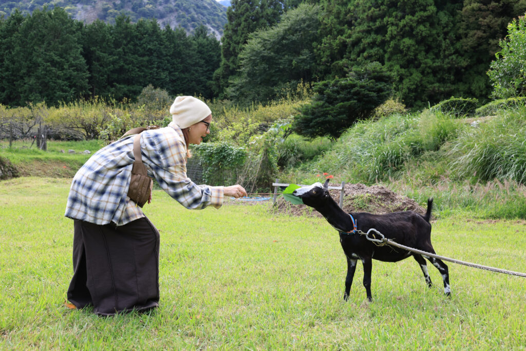 トンりお夫妻の到着を出迎えてくれたのは、広~いお庭で遊んでいたヤギやニワトリにカモ…。