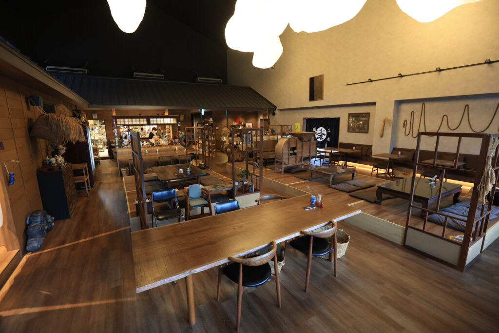 いなべの温泉複合施設「いなべ阿下喜ベース」の一角にあるグルメスポットは、こちらの「新上木食堂」。自社農園の無農薬野菜や地元食材をふんだんに使った、身体にやさしい定食や特製弁当(要予約)がいただけます。