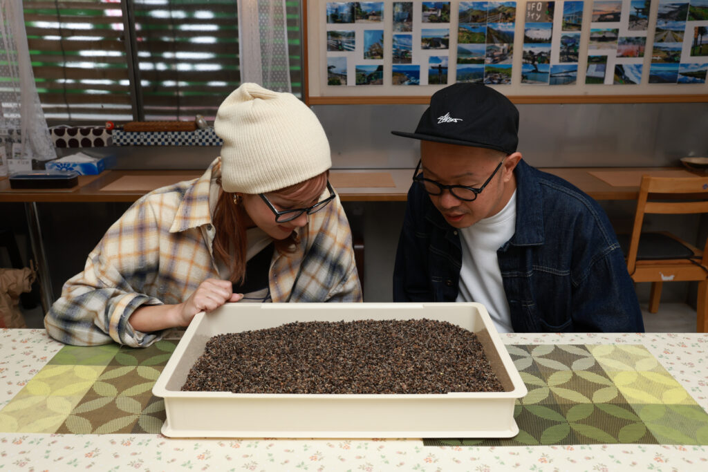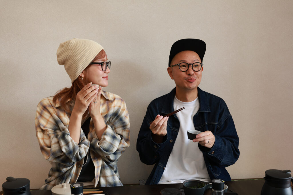 店内では自分でほうじ茶を焙煎して飲んだり、玉露の茶葉を食べたり、お茶屋さんならではの体験も。お茶の香りに包まれて、ふたりの元気もフルチャージされました。