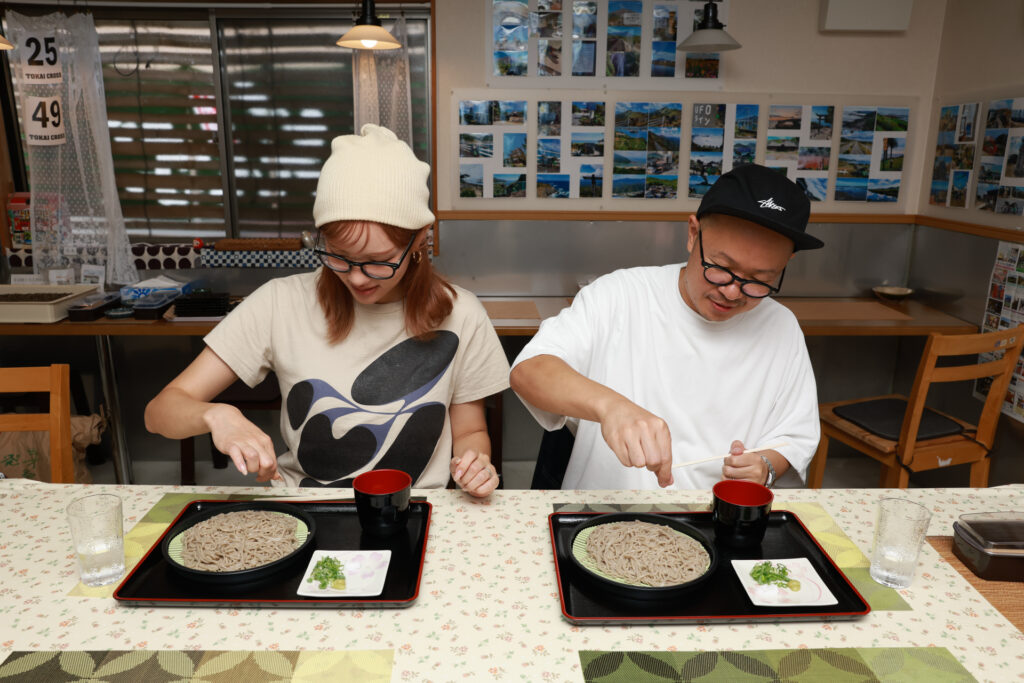 こちらもいなべ市の知る人ぞ知る名店!ご主人が自家栽培するそばの実を発芽させて打つ十割そばは、もっちり甘みがあるのが特徴。なかなか出会えない蕎麦に、トンりお夫妻も興味津々です。