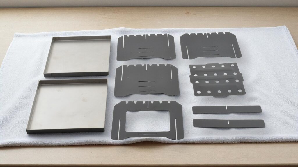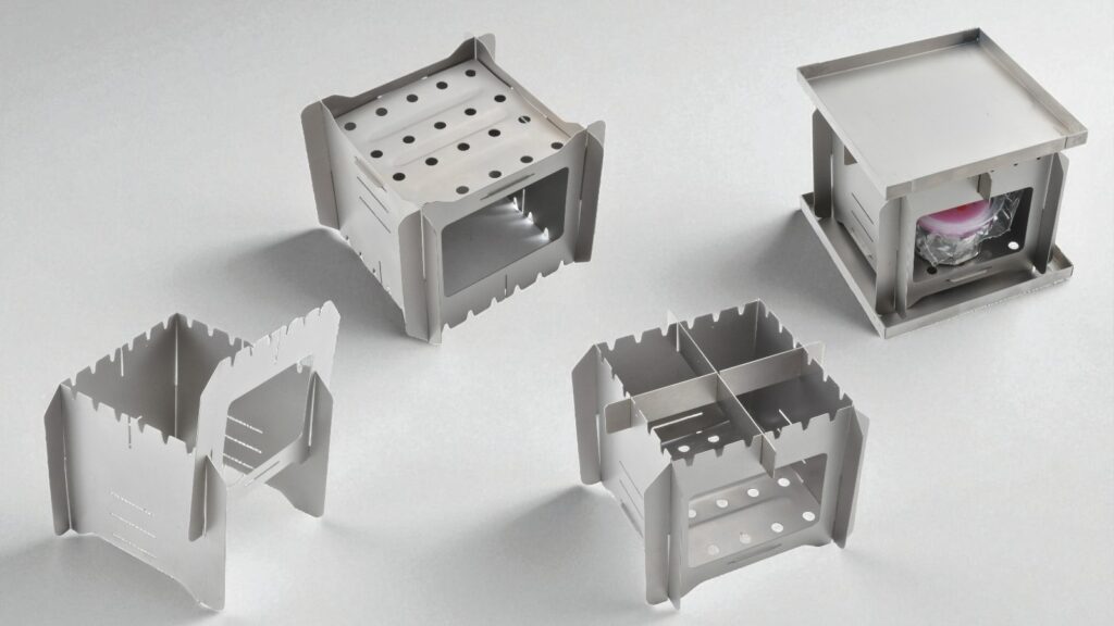 シンプルな板状のパーツで構成された「チタンコンロ」は、組み立て・片付けがたったの30秒!