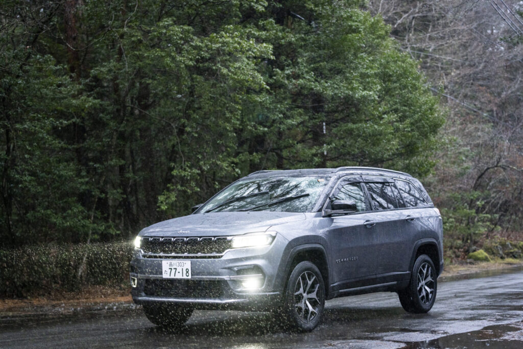 一行が乗り込んだのは、Jeepの3列SUV「コマンダー」。パワフルさと快適性を兼ね備えた一台で、真冬のロケでも安心感は抜群です。