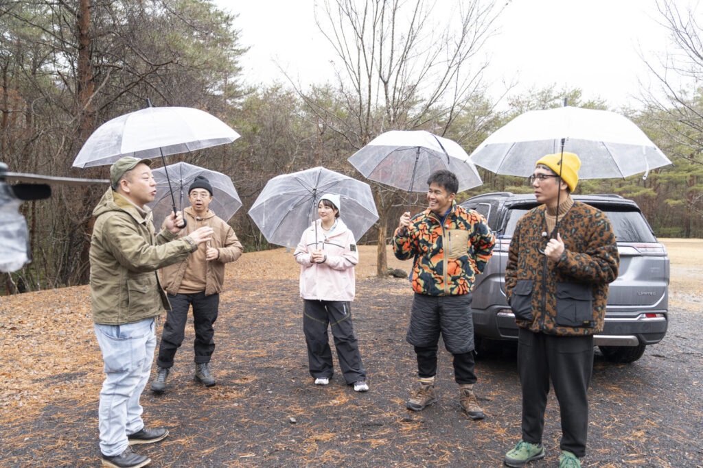 当日の天気はあいにくの雨……。しかし、そこは超ポジティブな面々。