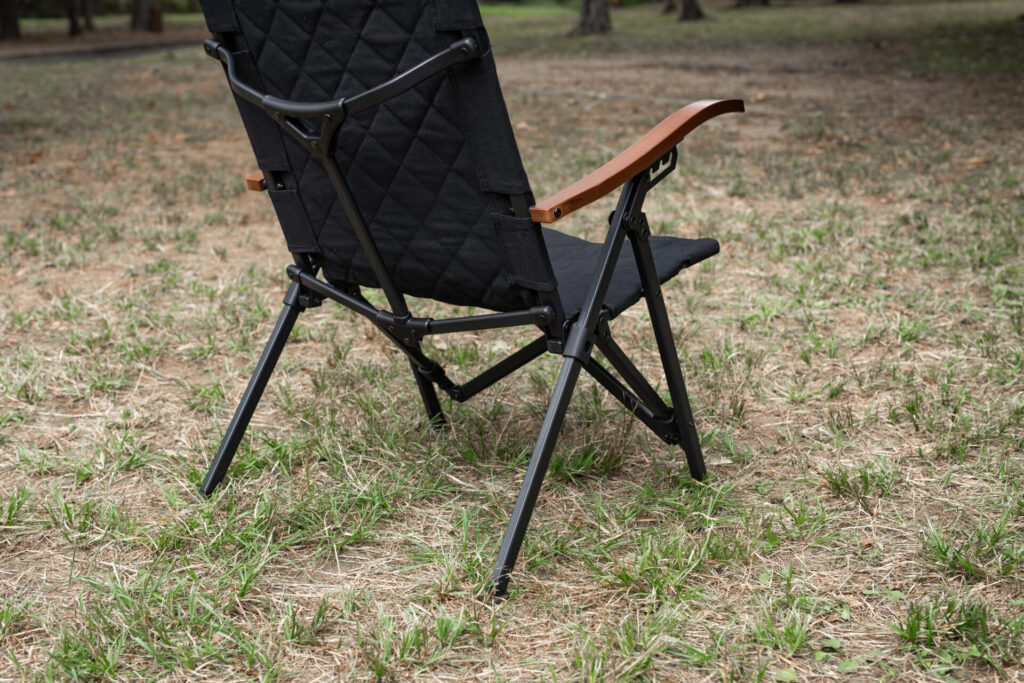 4段階リクライニングのおかげで、食事から焚き火などのリラックスタイムまで、この1脚で完結します。