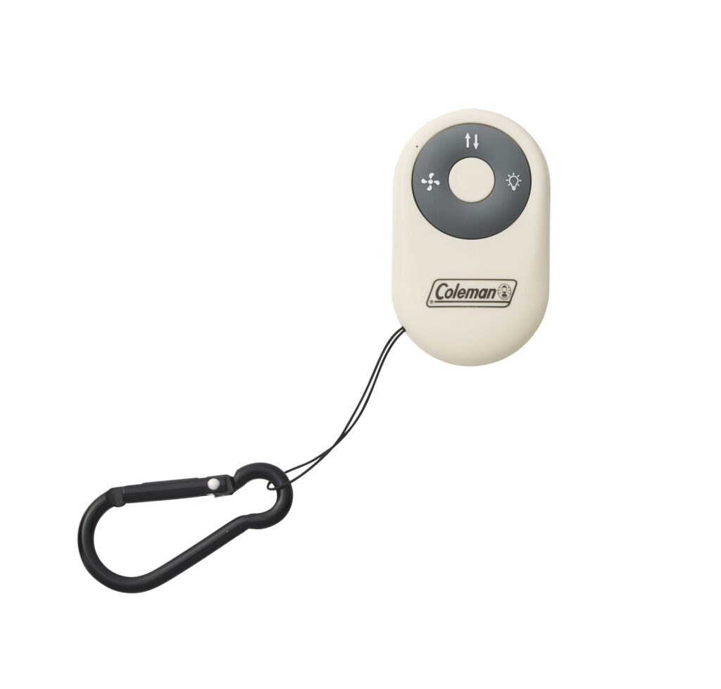専用のワイヤレスリモコンも付属。シュラフの中から出ることなく、手元で明かりと風量をコントロールできます。リモコンは本体中央にマグネット固定できるため、暗闇で探す手間がないのも嬉しいポイント。