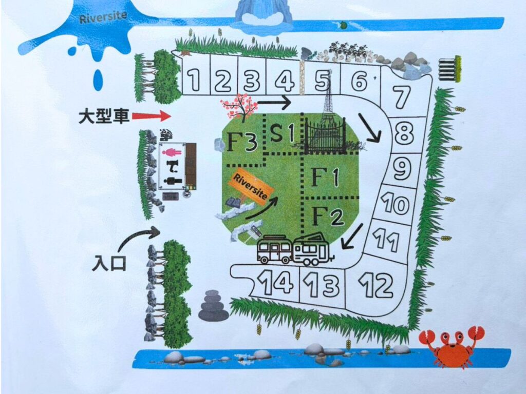 - 景観重視なら、滝に近いリバーサイト1〜3番が圧倒的におすすめ!