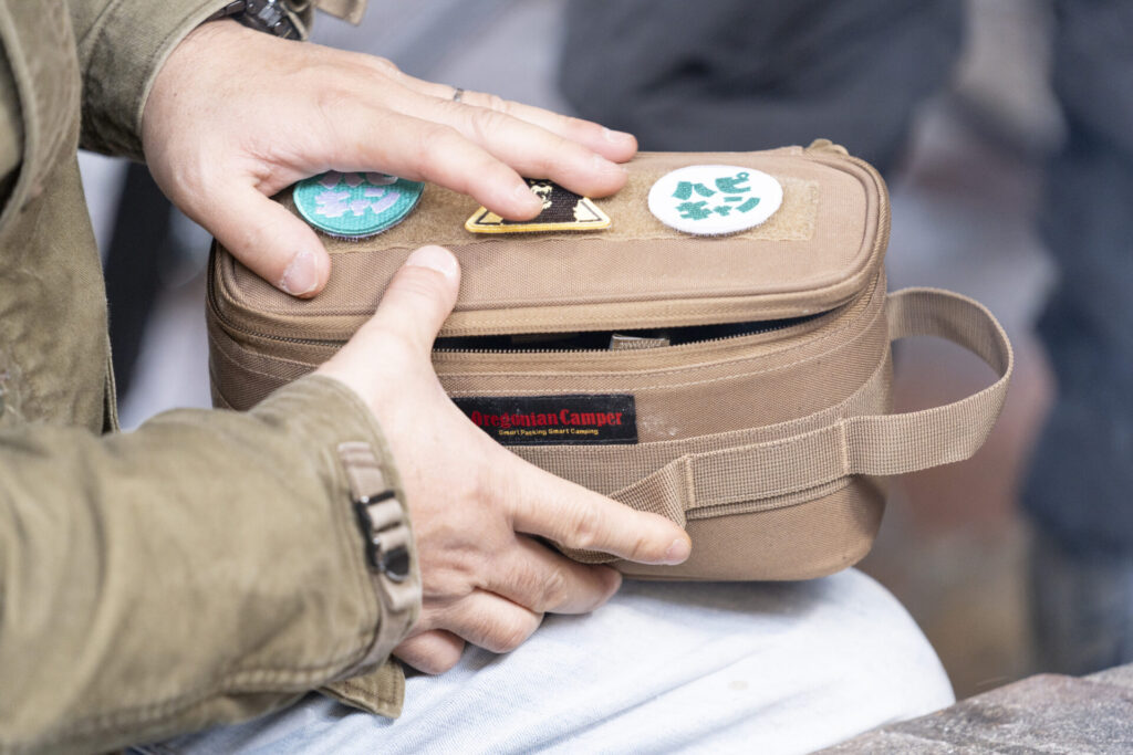 ここで西村さんが、ハピキャンのかわいいワッペンが付いた様々な調味料を入れることができる「ハピキャンマルチギアバッグ(ハピキャンストアで近日発売予定!)」を取り出します。