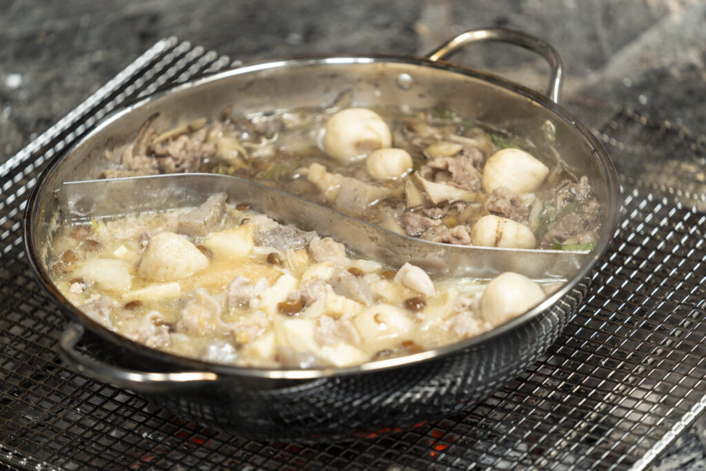 - 醤油ベース:かつおだし、牛肉、里芋、ごぼう、舞茸、こんにゃく、長葱
